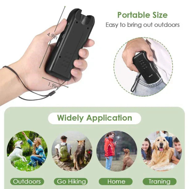 Anti-Bark uređaj: 2-u-1 ultrazvučni trener za pse dizajniran je za efikasno treniranje i kontrolu lajanja bez bola koji izazivaju šok ogrlice. Emituje ultrazvučne talase koji smanjuju lajanje, kopanje, grebanje, ugrize i skakanje na nameštaj.