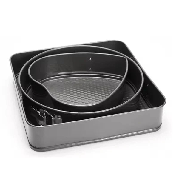 Ovaj set kalupa sadrži tri različita oblika za sve vrste poslastica. Idealni su za profesionalce i ljubitelje kućnog pečenja, sa pomičnim dnom za lako vađenje kolača.