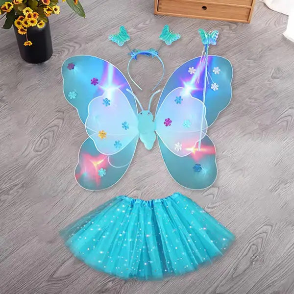 Kompletić sa svetlećom suknjom i krilima savršen je izbor za svečane prilike, maskenbale, rođendane ili svakodnevnu igru.