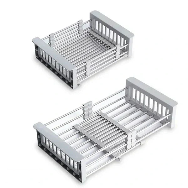 Prenosiva čelična korpa za sudoperu je praktično rešenje za pranje i sušenje posuđa. Podesiva je po dužini i izrađena od nerđajućeg čelika i plastike, sa izdržljivom konstrukcijom.